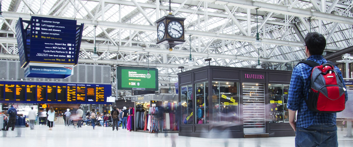 ● Estações ferroviárias: divulgação de horários e orientações aos passageiros.